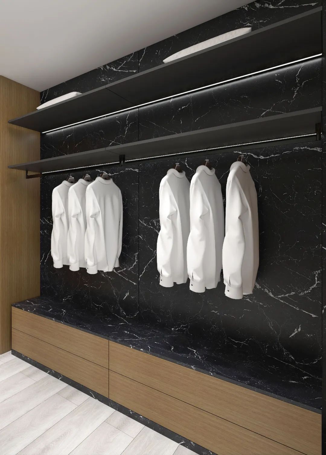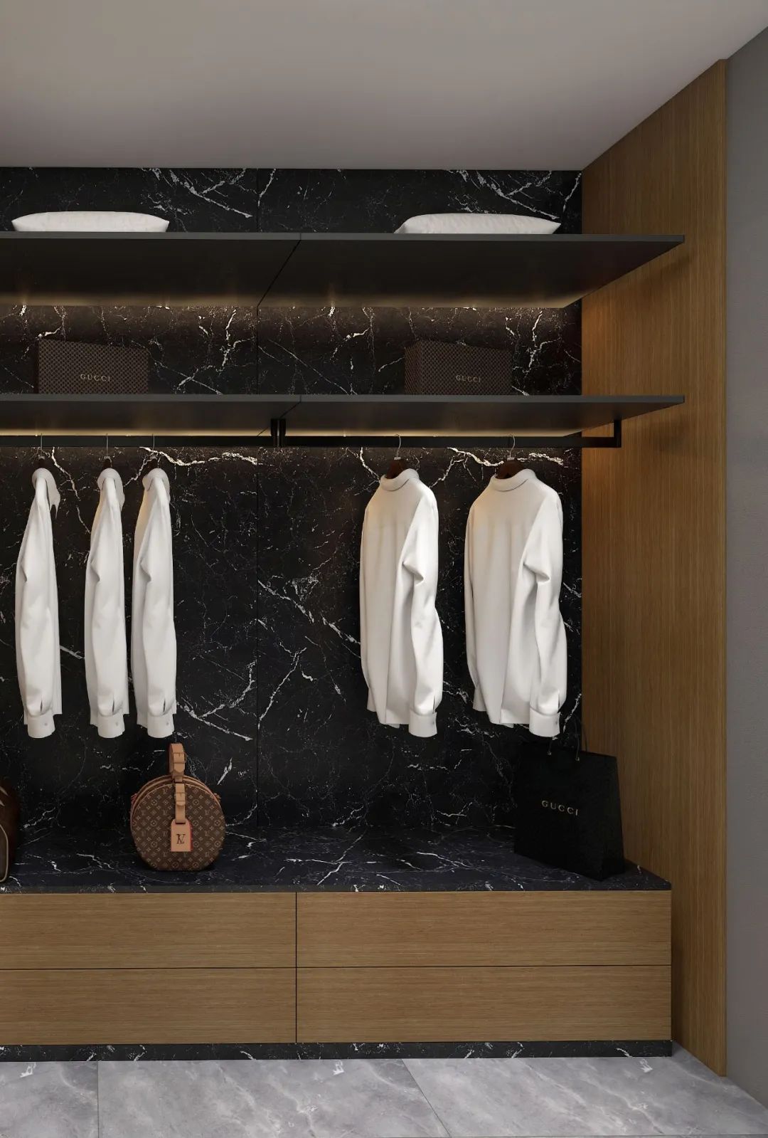 《天然木皮系列》选用竹香板为基材,搭配1mm原生天然木皮饰面,整体厚度达到了23mm,结构相当稳定,可做2730mm一门到顶。同时竹香板有不易变形的特点,解决了后期使用出现陈旧老化等问题,还有防潮、防霉等功能,长期使用也不惧磨损。