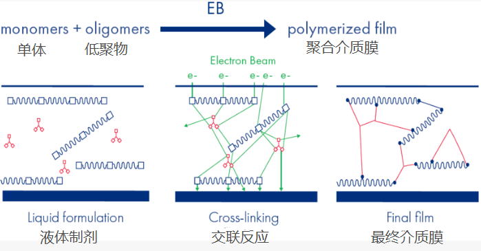 “EB电子束固化技术”是以电子加速器产生的高能电子束为辐射源,诱导液体低聚物经过交联聚合而快速形成固化产物的过程。由于能改善材料的性能并使产品具有无与伦比的理化性能,因此最早被航天、军工单位所采用;是目前已知最高效、最高质、最清洁的涂装固化技术!