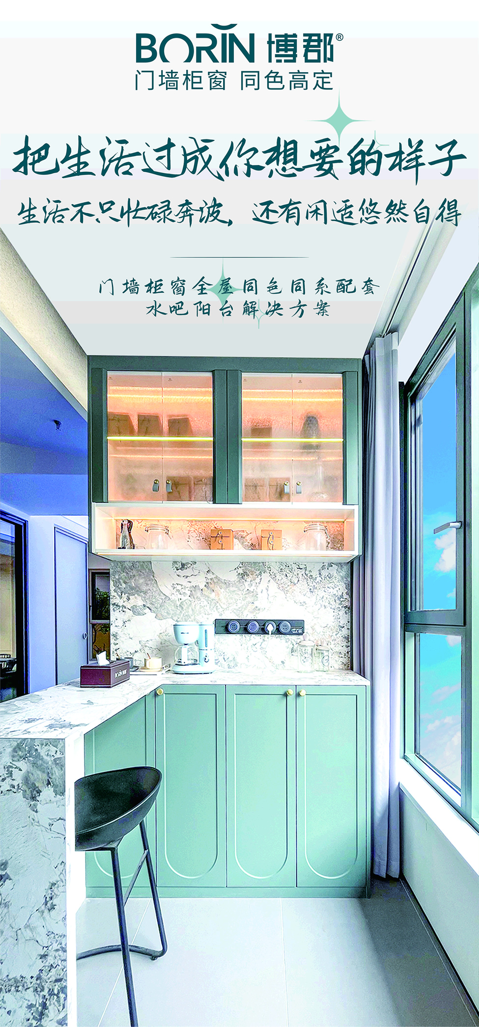 博郡门墙柜窗同色高定:库里蓝水吧阳台案例展示