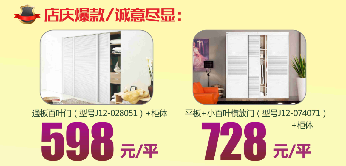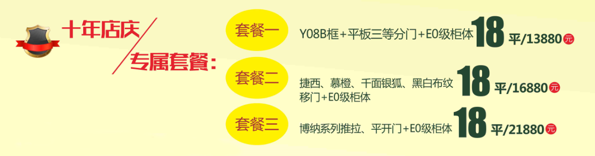 专属套餐一:Y08B框+平板三等分门+E0级柜体 18平/13880元
