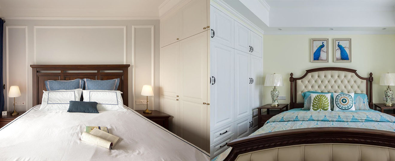 A:人每天有三分之一的时间是在卧室中度过的,卧室的设计一定要温馨要符合自己的审美,同时对于MM来说,卧室的衣柜一定要有足够大的收纳空间才能装得下自己的漂亮装备。卧室的设计一定要美观舒适同时兼具强大的收纳功能。博 郡田园系列卧室设计清新美观,田园风的清新质朴带来的是含蓄的浪漫情怀,自然柔美的风格让人身心都能得到完全的放松。
